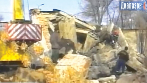На фото: 2002 год. Угол улиц Ворошилова и Кунаева. Это все, что осталось от КНС после взрыва. 4 человека погибли, трое из них медики станции скорой помощи. || Фото из архива «Д»