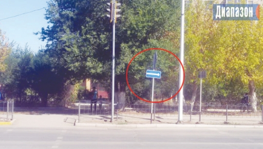 Прямо на перекрестке улицы Есет батыра и проспекта Абая уже больше недели дорожный знак не совсем верно направляет участников движения. Он повернут не в ту сторону.