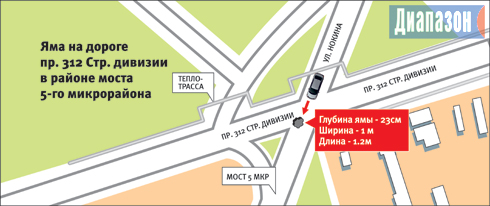Активист Артур Батырханов собирается подать в суд на ответственных за разбитые дороги на пр. 312 Стрелковой дивизии и ул. Нокина. 27 апреля его «Лада» попала в яму на этом участке, спустились оба колеса.
