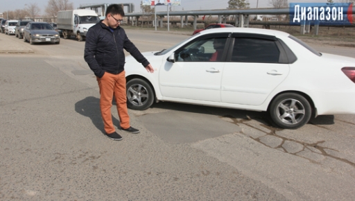 27 марта актюбинский защитник прав автолюбителей, активный участник объединений «Водители Актобе Zello» и «Общественный союз автомобилистов» Артур Батырханов возвращался домой из Орска. На пересечении пр. 312-й Стрелковой дивизии и ул. К.Нокина из-за дождя и тумана он не заметил на дороге большую яму и попал в нее. У машины Артура Батырханова были повреждены два колеса, еще ряд мелких поломок.
