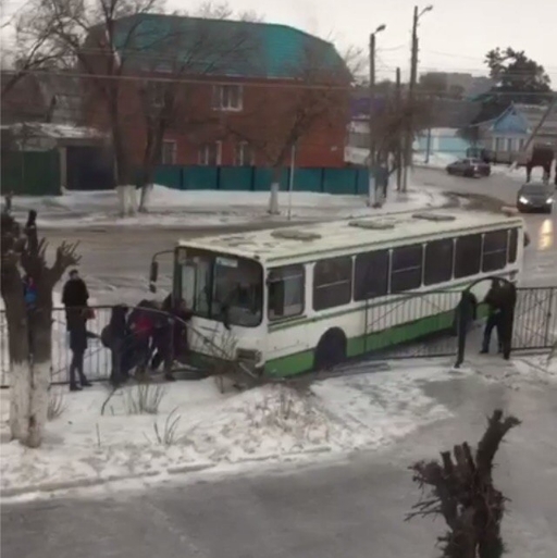 На фото: 20 марта. Возле школы №15 автобус маршрута №15 съехал и застрял в ледяной яме. || Кадр из видео Zello_aktobe
