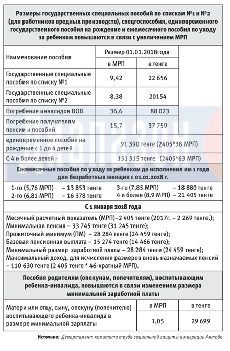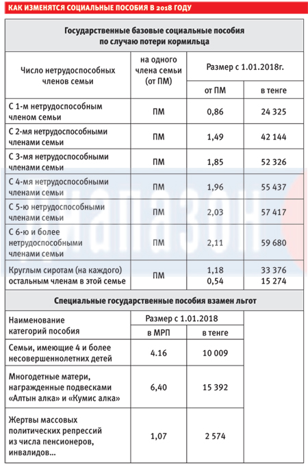 Размеры государственных социальных пособий по случаю потери кормильца и по возрасту с 1 января 2018 года повышаются в связи с изменением уровня прожиточного минимума (ПМ) и с учетом изменения кратности прожиточного минимума. Как именно изменятся размеры выплат, смотрите в таблице.