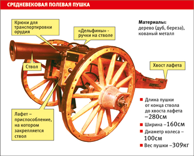 Она, как настоящая, из дерева и кованого железа длиной почти 3 метра и весом больше 300 килограммов. Такое орудие было на вооружении Британской и Российской империй. Только вот пострелять из собранной пушки не получится. У неё муляжный ствол.