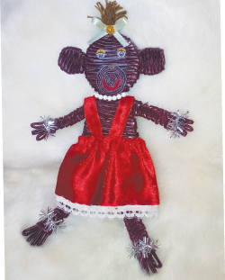 Елочную игрушку для газеты «Диапазон» мы смастерили сами. Обезьянка сделана из картона, поролона, хвостик из пружины и ткани, разукрашена красками.