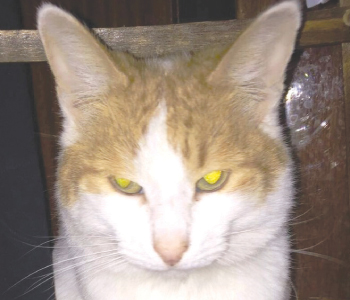 Кошка, окрас рыжий, с зелеными глазами.