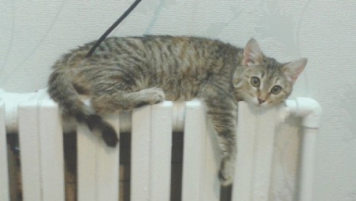 Кошка, к лотку приучена.