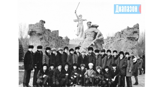 На фото: Январь 1981 г. Курсанты школы юных летчиков г. Актюбинска на Мамаевом кургане в Волгограде. Будущий космонавт Юрий Лончаков в верхнем ряду [отмечен кружочком]. || Фото из личного архива Александра КУРБАНОВА