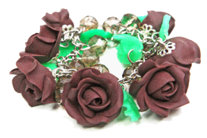 На изящном браслете с чешским хрусталем от рукодельницы Юляши цветут кофейные розы.