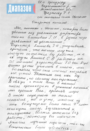 – Нет, конечно, таких фактов не было. Как вообще могут вот так запросто говорить ложь обо мне. Я сама столько лет отдала этому селу, школе. Я вообще не могу говорить о людях плохо. Я не могу сказать, почему так обо мне говорят. Я просто в замешательстве сейчас. У нас конфликта не было. 3 марта мне сообщили, что в школе выявили хищение продуктов, которые были предназначены на питание школьников из малообеспеченных семей. Расспрашивала об этом школьных работников. Потом написала заявление в госорганы по факту хищения. О жалобах на меня я поставила в известность районный отдел образования. Сейчас идут проверки.