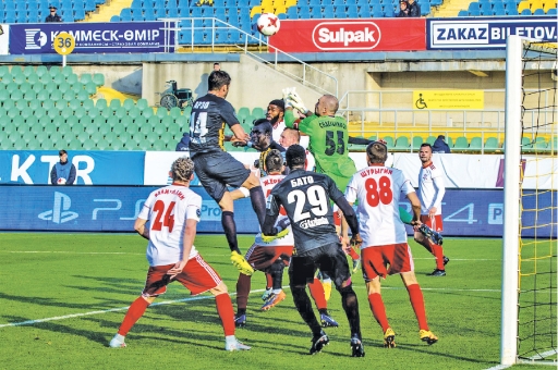 На фото: Алматы. Центральный стадион. Последний матч чемпионата-2017. У ворот «Актобе» атаку проводят игроки «Кайрата». || Фото с сайта «Кайрата»
