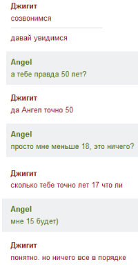 14-летняя девочка заинтересовала и более зрелых мужчин. Некто под ником Джигит указал в своей анкете возраст – 50 лет.