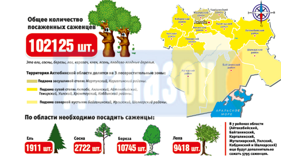 Предприятия-загрязнители природы – «Акбулак», ТЭЦ, «АктобеМунайГаз», АЗФ и «Трансэнерго» – теперь должны посадить деревья вокруг своих территорий, а акимы сельских округов – вдоль трасс.