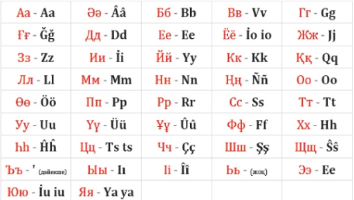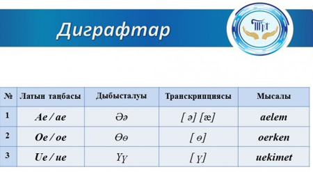 В проекте нового казахского алфавита 25 букв. Так, нынешнюю кириллическую «ә» заменят на «ae», «ң» – на «ng», «ғ» – на «gh», «ү» – на «ue», «ө» – на «oe», «ч» – на «ch», «ш» – на «sh», «ж» – на «zh». 26-ю букву – «х» – в казахском алфавите исключили.