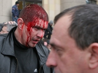 Активистов Евромайдана выводили через парадную дверь под улюлюканье толпы, которая была готова разорвать их. Евромайдановцев поставили на колени и заставили просить прощение. Прибывшая вовремя милиция взяла ситуацию под свой контроль.