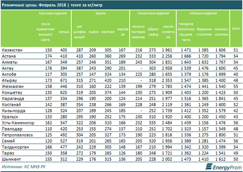 По итогам января-февраля казахстанские производители продуктов питания нарастили выпуск муки на 9,1% (до 728 тысяч тонн), а также лапши других макаронных изделий (до 27 тысяч тонн).