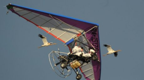 В начале сентября на Ямале Путин летал вместе с шестью стерхами (другое название белых журавлей), чтобы показать выращенным в питомнике птицам маршрут перелета. Мотодельтоплан, за штурвалом которого находился Владимир Владимирович, птицы принимали за своего вожака. Затем их подсадили к стае серых журавлей, которые собирались улетать на зимовку на юг Узбекистана. Однако из шести стерхов улететь со стаей смог только один.