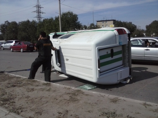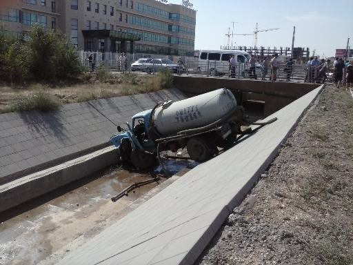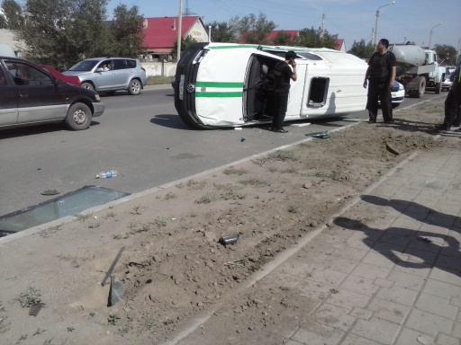 Сегодня, 9 августа, около 15 часов дня на проспекте Санкибай батыра столкнулись водовоз и машина инкассаторов. В результате столкновения водовоз улетел в арык. В автомобиле находились водитель и его маленький сын. Мужчина получил ранение головы и ног. У мальчика внешних повреждений нет. Медики обследуют его.