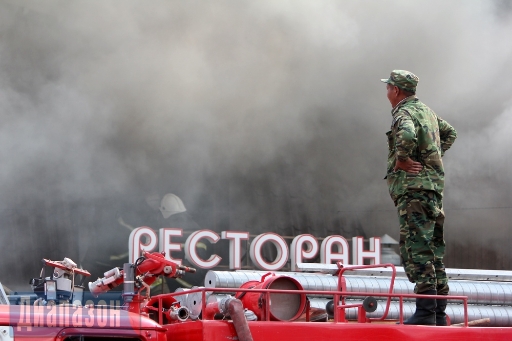 По словам персонала ресторана пожар начался на 2-м этаже.