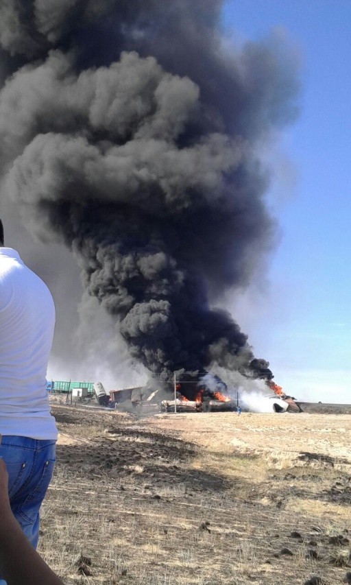 Цистерны с бензином сошли с рельсов и загорелись недалеко от Эмбы
