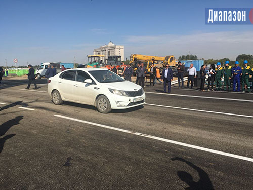 Мост строили 5,5 месяцев, он четырёх полосный. Функция моста в том, что он будет соединять улицу Сеитова с Маметовой, разгрузит наши дороги. Гарантийное обслуживание моста 5 лет. Мост 4-х полосный, длина - 42 метра, ширина - 22 метра. После открытия моста подрядчик продолжит работу по благоустройству прилегающей территории. Стоимость нового моста 340 миллионов тенге. В 12:30 открыли мост над железнодорожными путями в районе АЗФ.