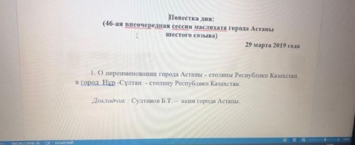 - Акимат города полностью поддерживает предложение Президента об увековечении имени нашего великого современника, Первого Президента - Елбасы Нурсултана Абишевича Назарбаева. К нам поступают письма от жителей города, трудовых коллективов в поддержку этой инициативы. Например, в социальных сетях мне пришло письмо, один из жителей мне написал: "Новое название столицы станет началом новых побед города". Акимат горячо поддерживает инициативу нового Главы государства, мы предлагаем и вам со своей стороны поддержать инициативу Президента Токаева и принять участие в становлении новых возможностей для развития нашей столицы.