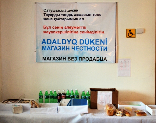 Открыл его начинающий предприниматель Ризат Айтуар. На открытие магазина честности у него ушло порядка 200 тысяч тенге, по 100 тысяч на торговое оборудование и товар.
