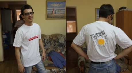 Еще один вариант футболки представила редакция "Уральской недели" - сотрудники газеты заказали сувенирные футболки. На майках есть известная фраза, кроме того, присутствует изображение яичницы. По информации издания, они были изготовлены сегодня, 4 мая, - в день, когда в Уральске с рабочим визитом находится Абденов.