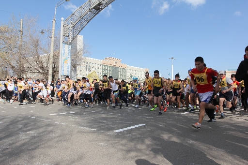 Старт марафона был возле областного акимата. Бежали школьники, спортсмены, студенты, работники организаций и вообще все желающие.