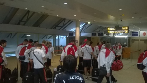 Вечером актюбинские футболисты прибыли в Таллинн чартерным рейсом из Актобе.
