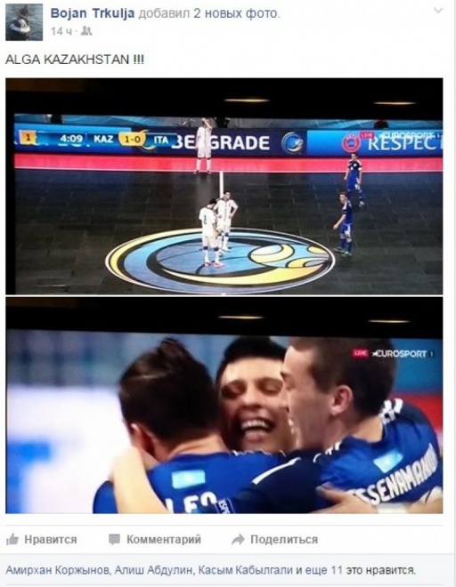 Теперь - Испания: "Привет. Я рад победе Казахстана над Италией и верю, что им по силам победить Испанию".