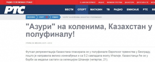 Сайт Радио и телевидения Сербия (РТС) назвала вылет действующих чемпионов главным сюрпризом турнира. Новость о матче вышла с заголовком: "Адзурри" на коленях, Казахстан в полуфинале!"