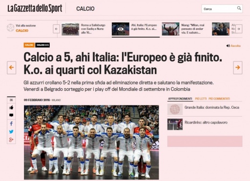 Сайт самой знаменитой итальянской спортивной газеты La Gazetta dello Sport прибегнул к боксерским терминам: "Чемпионат Европы для Италии завершен. Нокаут - в четвертьфинале от Казахстана".