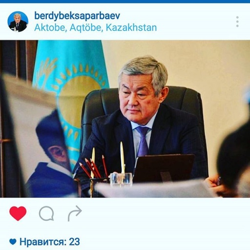 Сегодня пресс-служба акима области распространила сообщение с пометкой "важно" о том, что в соцсети Instagram зарегистрирован аккаунт @berdybeksaparbaev (Бердыбек Сапарбаев).