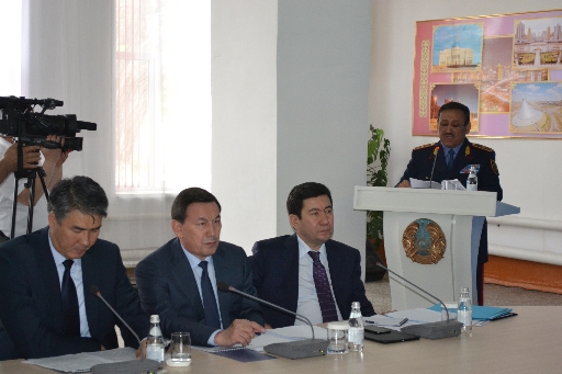 На заседании штаба также был глава МВД Калмухамбет Касымов (в центре) //фото автора