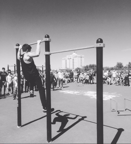 Площадка для workout представляет собой комплекс из 25 турников, где любой желающий может делать упражнения с собственным весом.