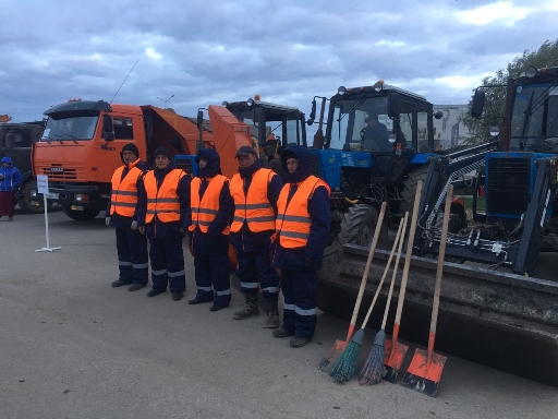 14 октября. Работники подрядной организации на смотре техники. Аким города проверял их готовность к уборке и вывозу снега. //Фото автора.
