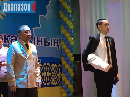 Посмертно наградили погибшего сотрудника охранной фирмы Мирхана Тажибаева, который 5 июня по тревоге прибыл к «Палладе» во время нападения на магазин. Награду принял его отец, таки не оправился после трагедии.