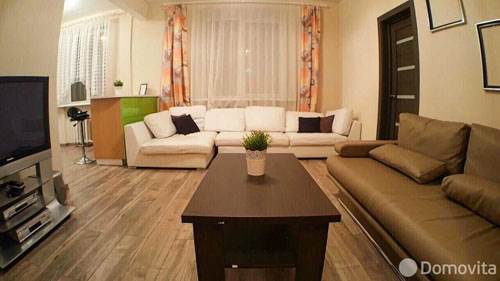 2. Следующая по стоимости — тоже трехкомнатная квартира по улице Бобруйской, 19. От культурного центра дальше, но удобнее для путешественников — в шаге от Центрального железнодорожного вокзала. Цена в том же формате соответственно: $70/$55/$20. Почасовая заметно ниже. Набор удобств — также «все включено» в том числе wi-fi.
