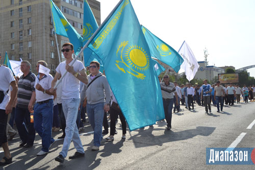 Более 12 тысяч актюбинцев - представителей разных профессий и организаций прошли торжественным шествием от площади Центрального стадиона до областного акимата, сообщает "Диапазон".