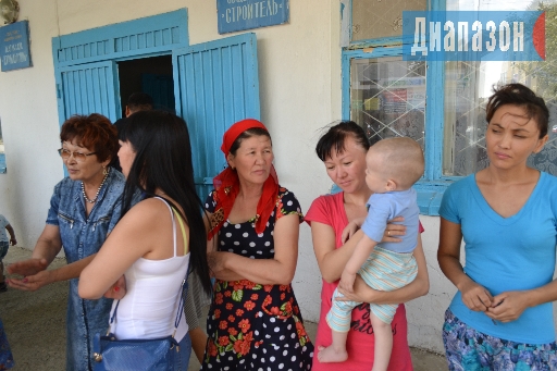 Хромтау. Жильцы аварийного общежития, большая часть которых матери-одиночки, собрались перед домом, чтобы попросить властей и ДГОК, не выселять их. //Фото автора.