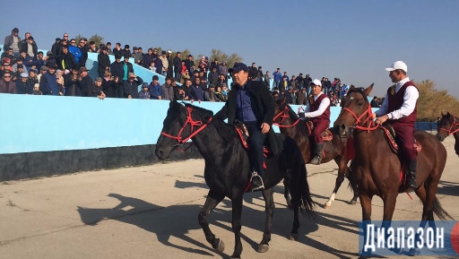 Перед началом скачек аким города Ильяс Испанов подъехал к сцене на черном скакуне, чем привёл в немалый восторг зрителей.