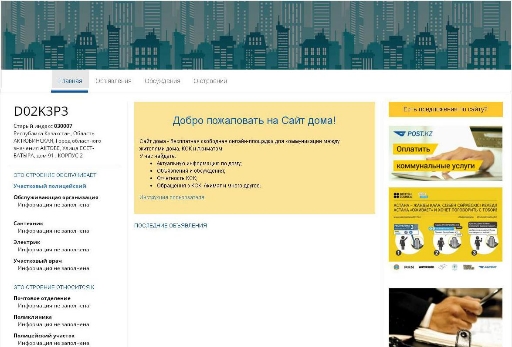 Для посещения сайта дома нужно зайти на www.post.kz, нажать на ссылку "Почтовые индексы", в строке поиска ввести адрес дома, нажать на: "Открыть сайт строения", бесплатно зарегистрироваться/ пройти авторизацию, подтвердить проживание по выбранному адресу (нажать на «Получить роль жителя»).