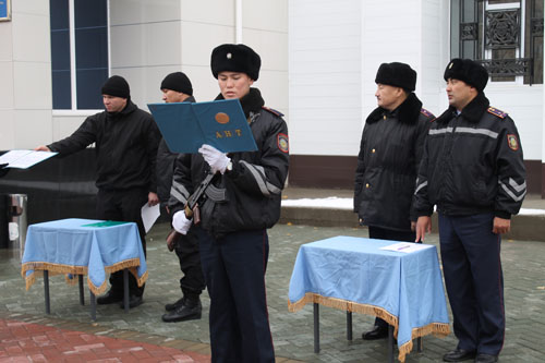 - Этот день должен стать для них незабываемым, как и слова произнесенной клятвы, - поздравил новобранцев и.о начальника ДВД Актюбинской области полковник полиции Арыстангани Заппаров.
