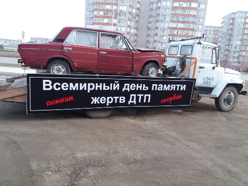 С утра колонна стартовала от областного здания МПС до парка президента. Машины, искореженные в ДТП, разместили на эвакуатор.