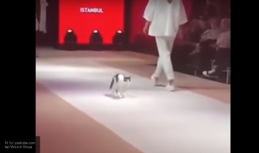 Бездомная кошка бесцеремонно взобралась на подиум во время модного показа в Стамбуле, сообщает Sputnik.