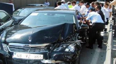 Авария произошла на пути кортежа из аэропорта Измира в порт Алсанджак. Пять автомобилей "Мерседес", замыкавших президентский кортеж, по цепочке столкнулись с машиной, в которой ехали представители СМИ, освещающие визит. В результате ДТП, сообщил корреспондент "Голоса России", водители и некоторые представители туркменских властей и охраны получили легкие ранения. Число пострадавших и их должности он уточнять не стал, пишет Lenta.ru.