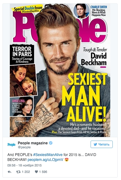 Полный список самых сексуальных мужчин 2015 года (Sexiest Man Alive) появится в новом номере People, который выйдет 20 ноября. Пока журналисты не разглашают, кто, помимо Бекхэма, вошел в их рейтинг.