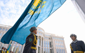 Под звуки гимна флаг Казахстана был поднят в небо как символ единства, мира и независимости страны.