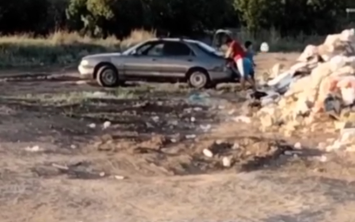 Подъехала машины и прямо из багажника люди начали выбрасывать мусор.
