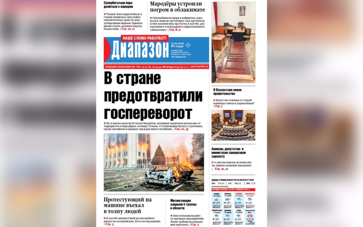 На Алматы напали 20 тысяч бандитов, силовики защитили мегаполис от террористов и мародёров, сообщил Токаев. Столкновения были в 11 регионах, среди силовиков и мирных граждан много погибших. | Стр. 12, 13